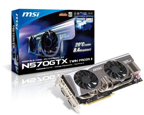 MSI N570GTX TWIN FROZR II NVIDIA GeForce GTX 570 1280MB GDDR5 2DVI/Mini HDMI PCI-Express Video Card N570GTX TWIN FROZR II Customer Rating: